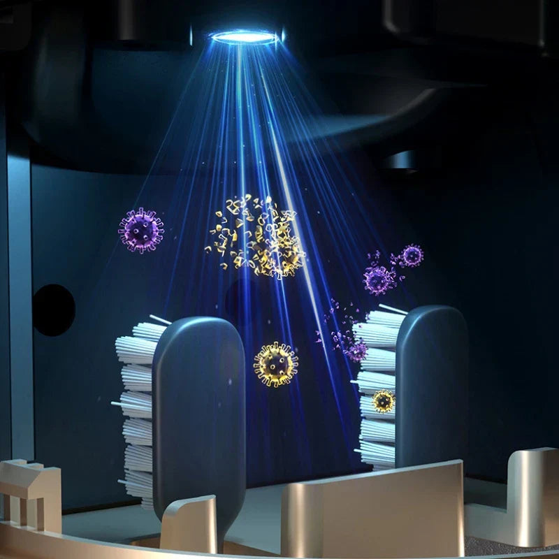 • UV Sterilization: The advanced UV technology ensures your toothbrush stays clean, free from bacteria and dirt.