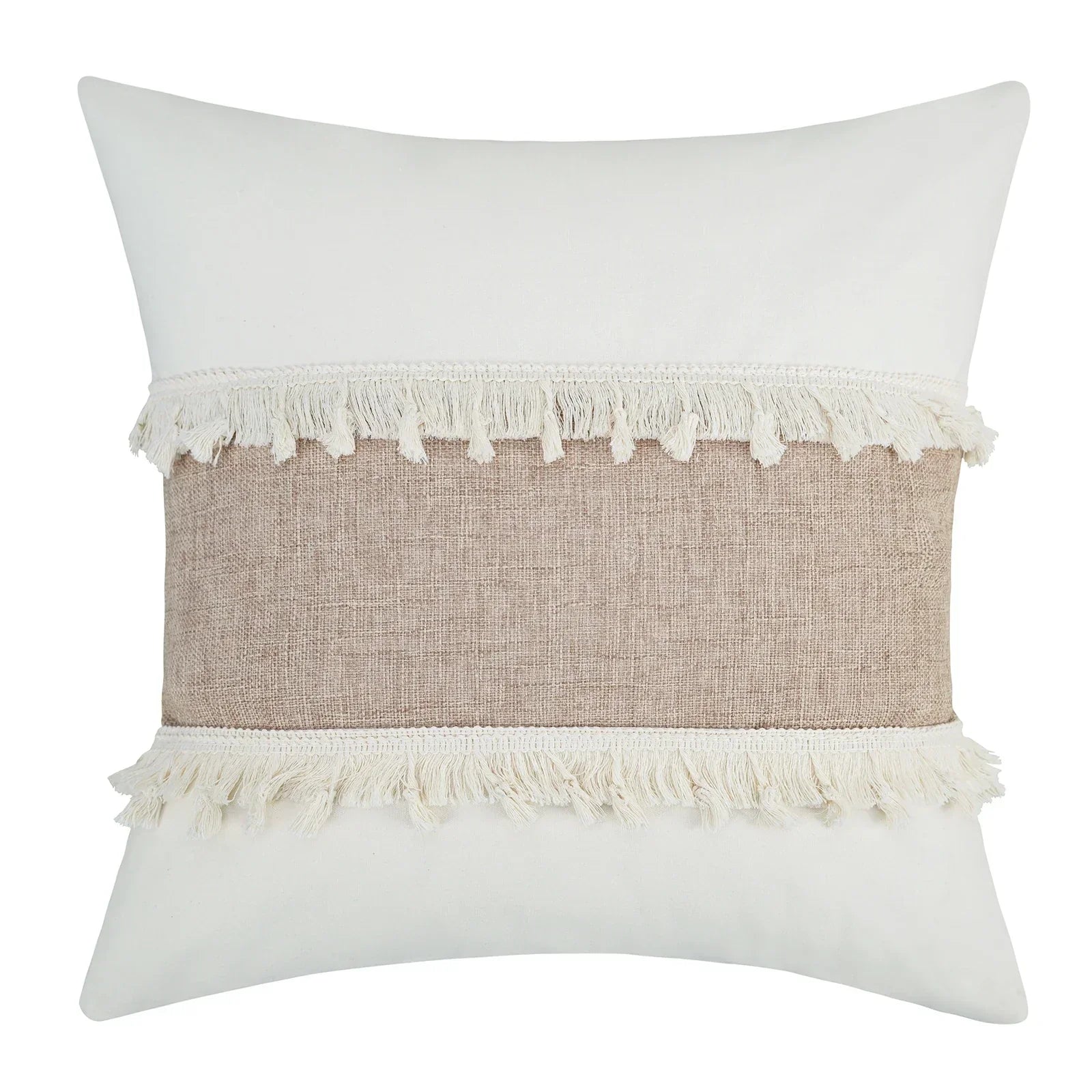 BohoBlend | Elegant Beige Cushion with Geometric Design