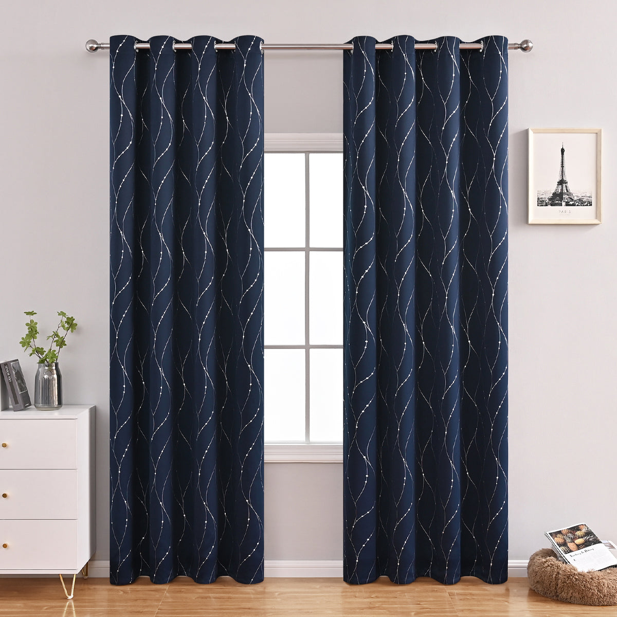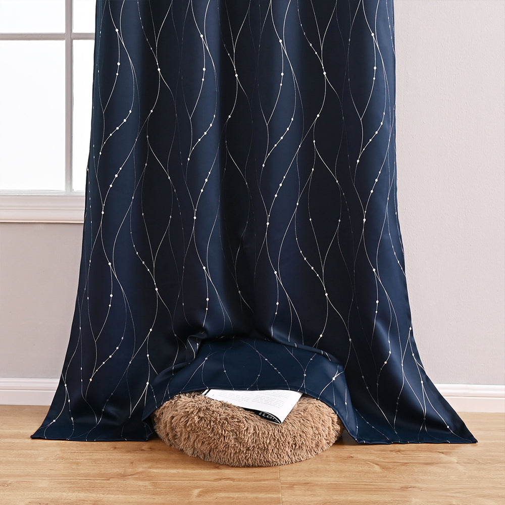 Blackout Curtain with Stylish Dot and Wave Patterns