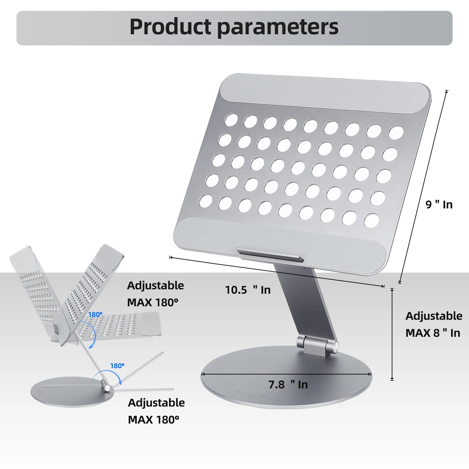 • 360° Rotating Base – Smooth swivel movement for multitasking, sharing screens, or quick access.
